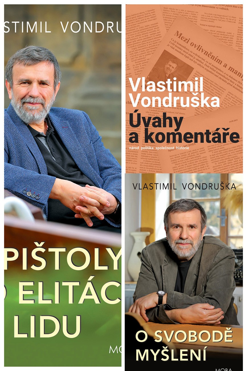Komplet knih Vlastimila Vondrušky obsahuje knihy: Úvahy a komentáře, Epištoly o elitách a lidu a O svobodě myšlení